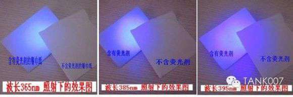 使用起來也非常簡單:含熒光劑的產(chǎn)品在365nm紫光手電的照射下放射藍(lán)光,不含熒光劑的產(chǎn)品顯示黃色光;其他產(chǎn)品在365nm探客紫光手電的照射下,
